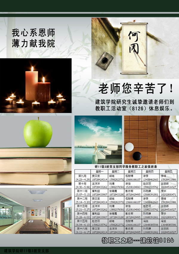 在此,诚挚邀请各位老师到教工之家活动休息室(X8126)休息娱乐!