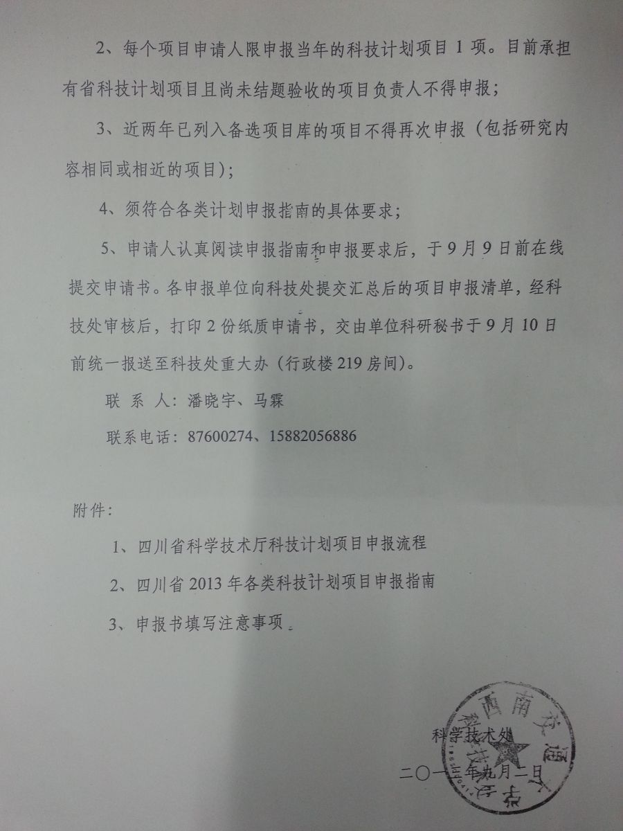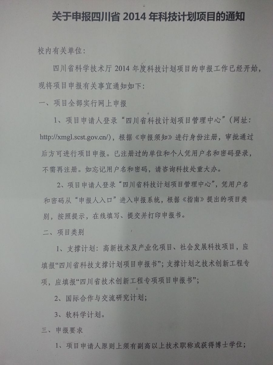 【科研】关于申报四川省2014年科技计划项目的通知