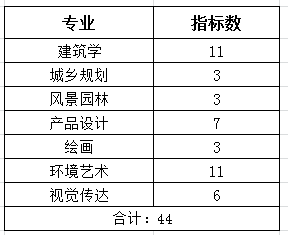 根据学校《关于公布 2020 届免试研究生推荐指标数的通知》,2020届建筑与设计学院免试研究生总指标数44名,经学院推免遴选工作领导小组研究决定,各专业免研指标分配如下: