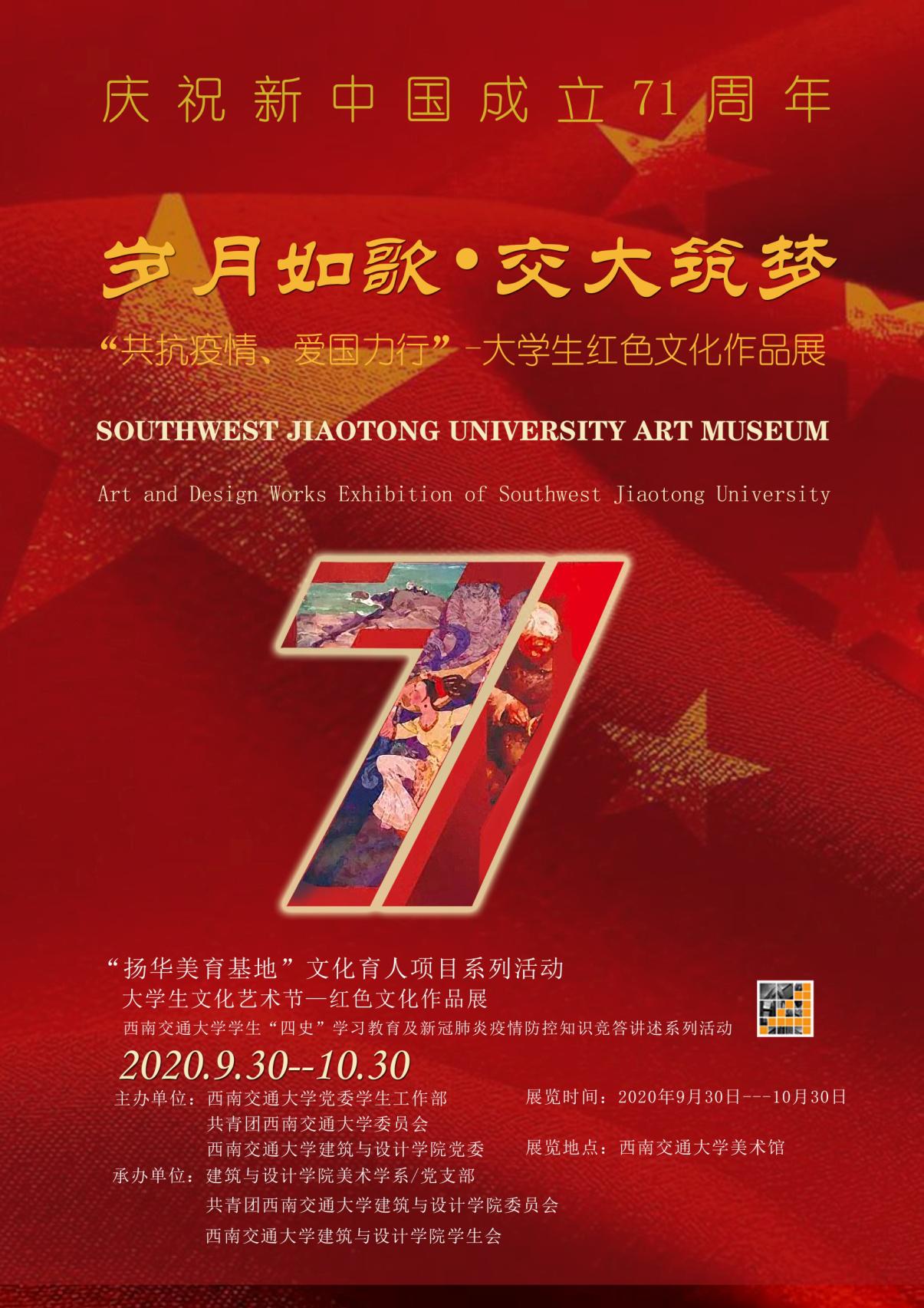 建筑与设计学院党委联合主办,美术学系/党支部、建筑与设计学院团委、建筑与设计学院学生会承办的 “岁月如歌·交大筑梦”庆祝新中国成立71周年艺术&设计作品展即将在卡通a片