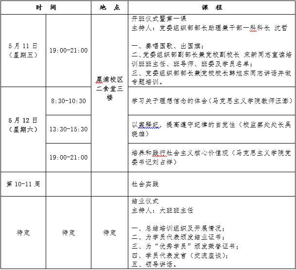 【党校培训】2018-01期党员发展对象培训班教育培训安排