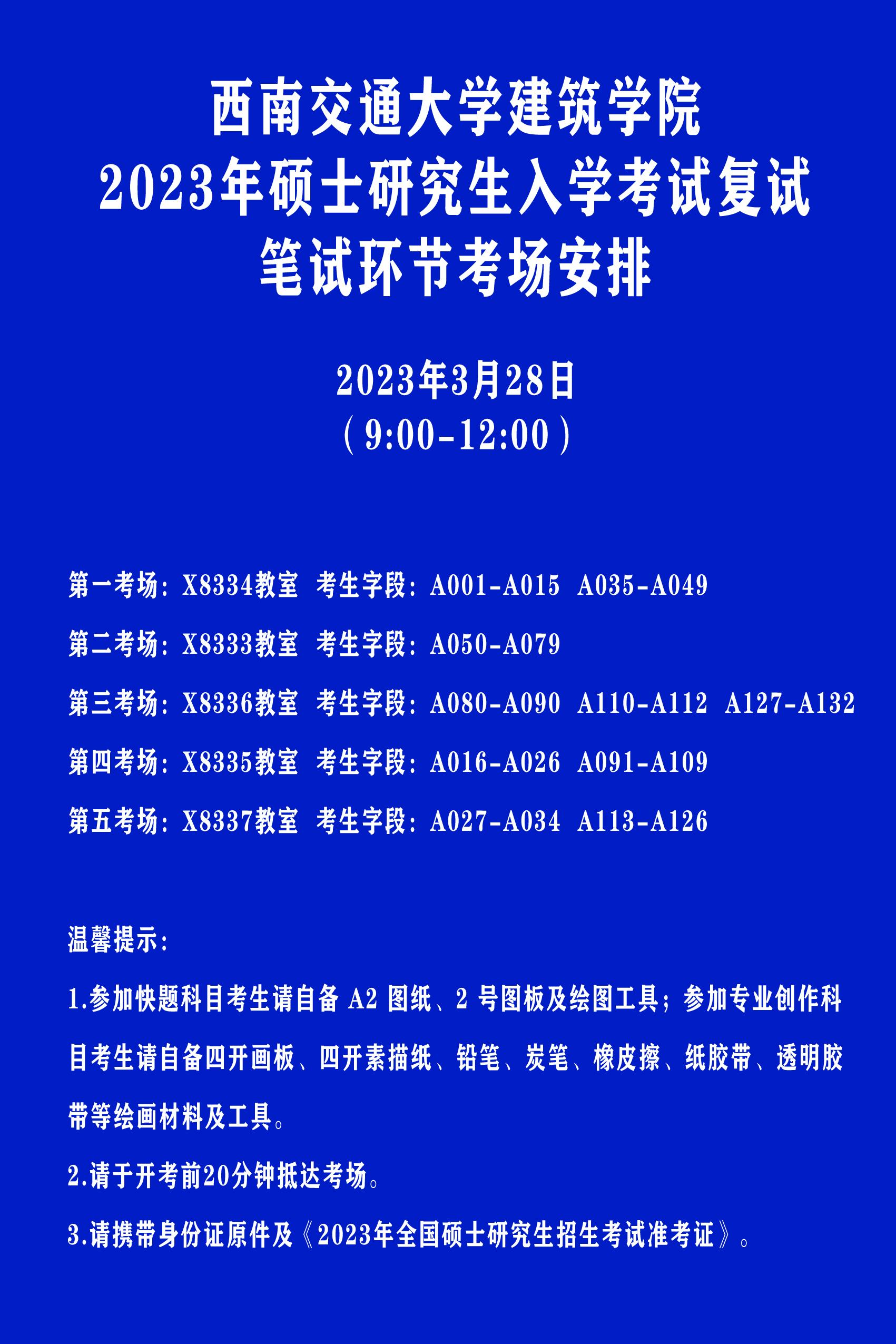 2023年硕士研究生入学考试复试笔试环节考场安排