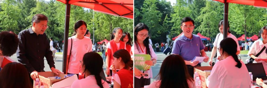 学校及学院领导高度重视迎新工作。上午10时,校党委书记余敏明,校长杨丹,学院党委书记胡伟,学院执行院长沈中伟及相关部处领导和学院领导来到学院迎新点,与新生辅导员、志愿者和2023级新生亲切交流,了解迎新工作进展,传达学校、学院的关怀与温暖,表达对新生们的热烈欢迎。走访搭建了师生沟通的桥梁,拉近了师生心与心的距离,促进新生更好更快地融入建院大家庭。