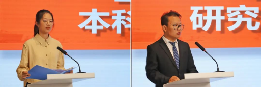 高一菲同学和郝杨光同学分别作为本科、研究生新生代表发言。高一菲在发言中表示,崭新的人生画卷在大家面前徐徐展开,等待奋力书写。让我们带着那一份踌躇满志的初心,带着它在全新的道路上去探索前进。郝杨光表示,我们怀着对知识的渴求,肩负国家、学校、学院、家乡的殷切期望而来,如今在新的起点上,未来也一定更加广阔。