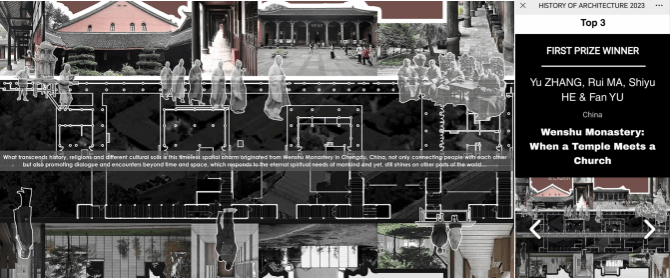 张宇老师参赛团队提交的英文论文《文殊院:当寺庙遇见教堂》(Wenshu Monastery: When a Temple Meets a Church)在Archiol第二届建筑史国际征文竞赛中荣获第一名。本次Archiol 建筑史论文竞赛的得奖论文来自包括中国、克罗地亚、印度、美国等多个国家。获奖团队中除张宇老师外,还有今年刚毕业的2018级本科生马瑞(现就读于法国巴黎马拉盖国立高等卡通a片