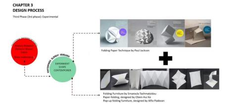 转化完成后,则进入了第三阶段:Experimental(实验),在这一阶段中,Erwin Ardianto Halim 提到了具体的设计过程,如采用折纸技术和将技术融入设计。