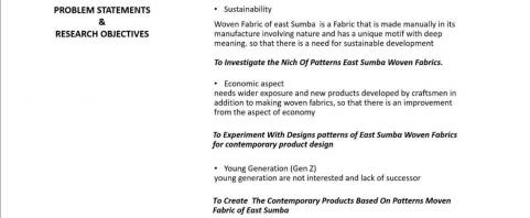 Erwin Ardianto Halim首先通过地图介绍了印度尼西亚,突出了其多样的岛屿。研究背景强调了图案的重要性,它们具有独特的文化意义,代表着印度尼西亚的文化遗产。强调研究重点应是开发印尼东松巴梭织物在产品设计中的潜在图案,侧重于将传统应用于现代产品中。并展示了松巴梭织物的制作过程。
