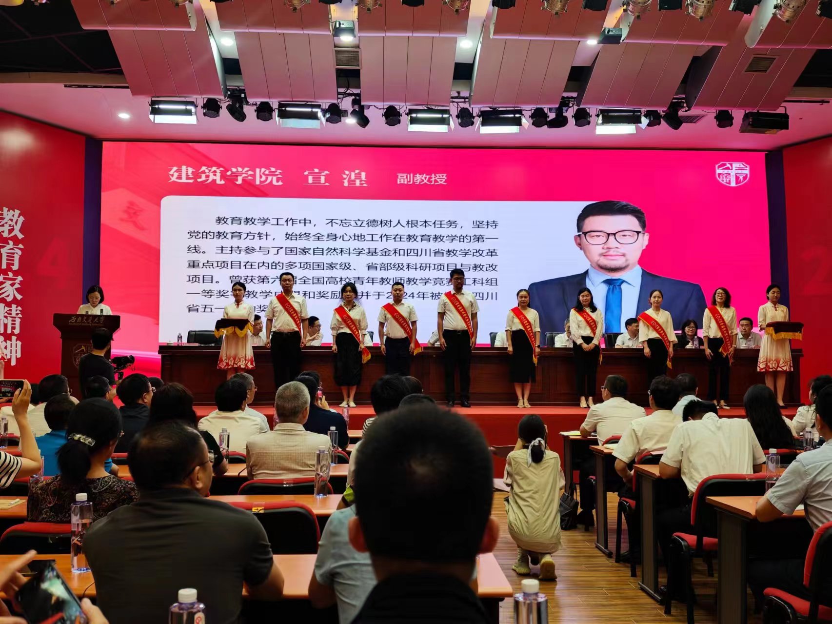 宣湟老师坚持党的教育方针,不忘立德树人根本任务,始终全身心地工作在教育教学第一线。在教育教学工作中,承担本科生《绿色能建筑学概论》《建筑设计基础》以及研究生《绿色建筑设计原理与方法》等课程的教学工作,主持参与国家自然科学基金和四川省教学改革重点项目在内的多项国家级、省部级科研项目与教改项目。他在教学上理念先进、专业实力强,教学功底扎实,曾获第六届全国高校青年教师教学竞赛工科组一等奖等教学成果和奖励,并于2024年被授予四川省五一劳动奖章。