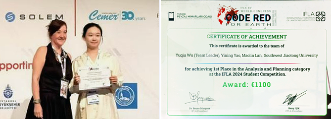 研究生吴雨秋、姚怡宁、兰茂林的作品《BOMBSCAPES:FROM THE WITHERED LAND TO THE LIVING REALM》斩获IFLA国际学生风景园林设计竞赛分析与规划类一等奖。这是西南交大师生团队首次在该赛事中获得一等奖,实现了历史性的突破。