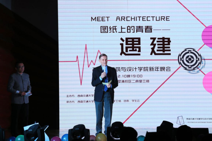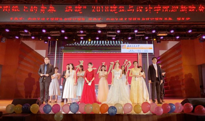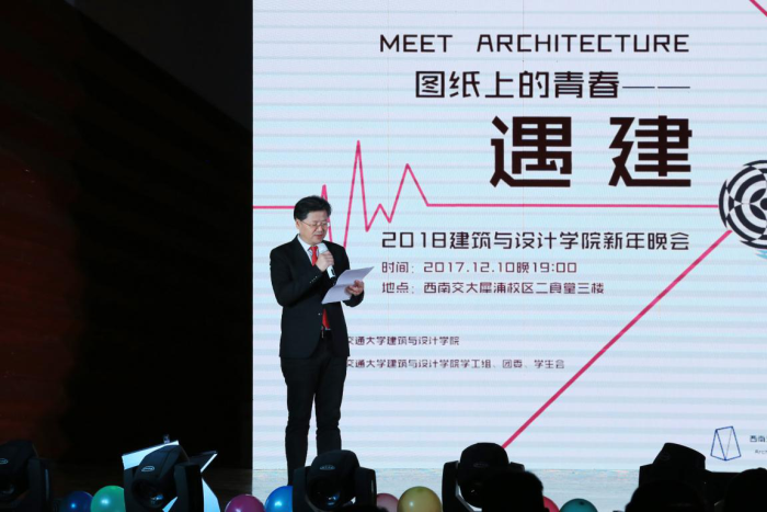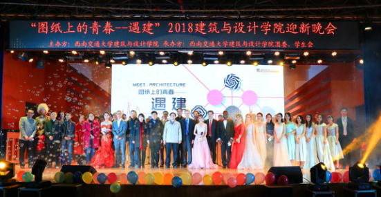 建筑与设计学院2018“图纸上的青春——遇建”迎新晚会于犀浦校区二食堂三楼隆重举行。建筑与设计学院党委书记沈中伟教授、院长Odgaard教授、全体院领导及各系领导、教师代表,各学院学生代表及卡通a片