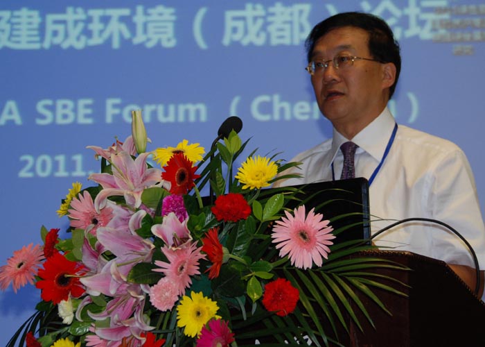 论坛开幕式于7月15日下午2:30在九里小区国际会议厅隆重举行。我校国际合作与交流处邱延峻处长代表陈春阳校长在论坛开幕式上致欢迎词。成都市政协副主席、成都市城乡建设委员会主任黄平;四川省住房和城乡建设厅总规划师邱建;都江堰市规划管理局党组书记、副局长陈捷等出席论坛开幕式并致辞。黄平副主席表示,论坛的举行,使得成都建设领域接触到了国际可持续建成环境研究与实践的新动态、新思路,对拓展成都市可持续人居环境建设的思路和视角,扩大绿色建成环境发展的国际合作,都具有非常积极的意义。华夏社会创新基金会主席、康奈尔大学可持续全球企业中心高级主管游小健先生介绍了本次论坛背景和出席论坛的中外专家。