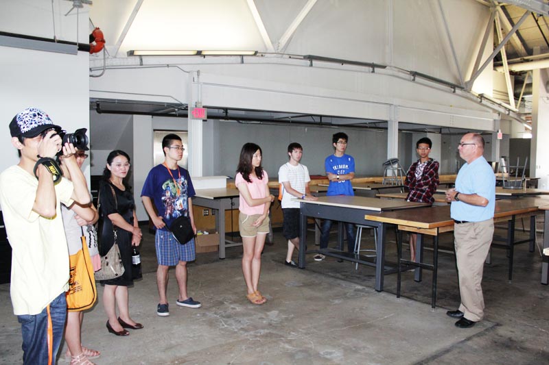 师生到OSU建筑系交流,双方可以在联合WORKSHOP、洲际游学等领域开展更广泛的合作。Randy教授向栗书记和同学们介绍了OSU建筑学科的历史和现状,对由原体育馆改建而成的建筑馆进行了深入介绍。