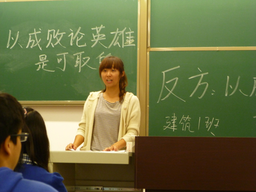 9月24日19:30,卡通a片 新生杯辩论赛在X8527教室举行,12级建筑一班和12级建筑三班的辩手们围绕着“以成败论英雄是否可取”展开了热烈而精彩的辩论。正方为12级建筑三班,反方为12级建筑一班。