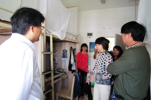 学生宿舍看望2012级同学们,向他们送去了节日礼物以及节日的问候。