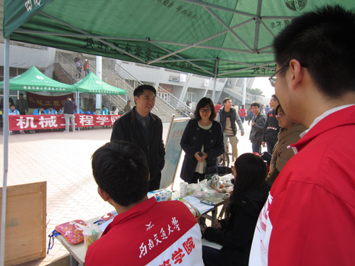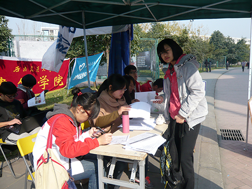 在体育场外设立了大本营,一些青协的志愿者负责在此值班。比赛期间,志愿者们在大本营为参赛选手准备了热水、葡萄糖、香蕉等食品,并及时的记录参赛选手的比赛成绩。志愿者们最主要的任务就是为有需要的同学提供帮助。志愿者们那句“有啥需要尽管说,我们一定尽全力帮你”温暖着每个同学的心。同时志愿者也负责提醒那些即将开始比赛的同学,并引导他们进入比赛入口。认真、仔细,笑脸、加油成为运动会上志愿者们的标志。