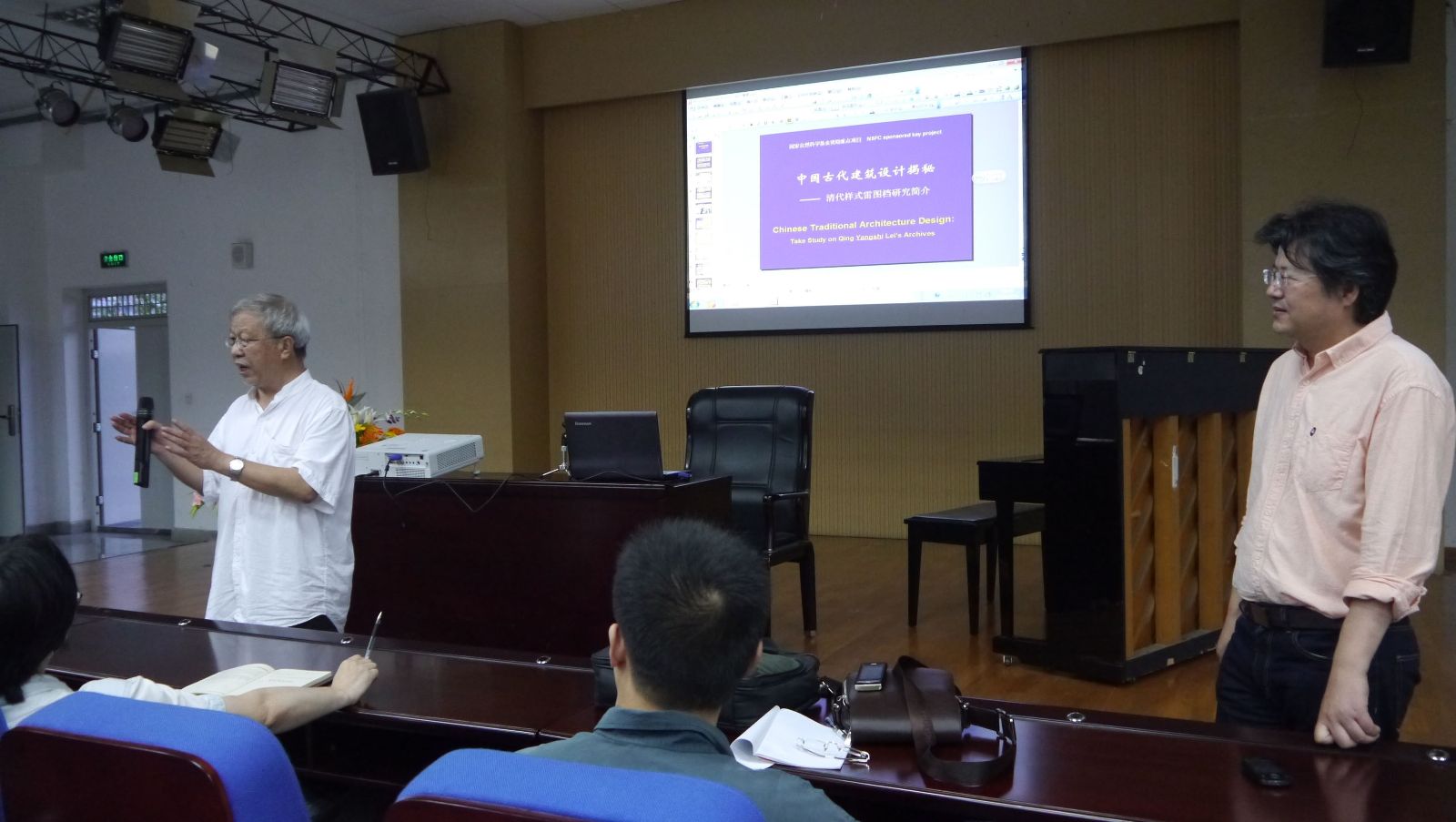 王教授从创造世界文化遗产的建筑世家——清代样式雷家族八代传人的历史讲起,接着详细介绍了样式雷家族绘制的图档中涵盖皇家园林、宫殿、陵寝、家具陈设等多方面的设计作品。通过王教授多年艰苦卓绝的研究,揭示出学界找寻多年的古人设计建筑的关键程序——“平格”模数网(与当代的数字地面高程模型DEM的核心理念完全契合)。接下来王教授以清东陵为例系统介绍了“平格”设计方法的历史渊源及在古建筑设计中的具体应用。王教授在讲座中旁征博引,不但描绘出中国古建筑精致美妙之处,而且展示出中国文化的博大精深。他谈吐中所表现出的渊博学识、职业品格和对民族文化的挚爱不断赢得师生们的喝彩和掌声。