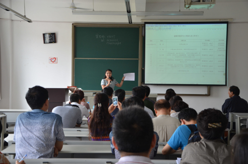 辅导员王少婧老师和新生辅导员方翰老师就学生日常管理实务及《本科生教育规范》向家长们做了详细说明。希望通过本次讲解,让家长更多的了解学校的规章制度,以便于辅导员和家长有更好的沟通交流,共同为学生的学习、生活做好保驾护航工作。同时学生工作组为让新生家长们也能及时沟通联络,利用现代网络平台,为新生家长们也搭建起沟通的桥梁---创建了2013级新生家长QQ群。同时学院也积极利用新生家长QQ群转发学校、学院等相关通知以及学生在校情况、成绩等,这样也能做到家长与学生接收信息同步性、统一性,让学生家长在第一时间了解到学生的信息。