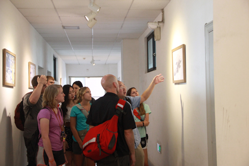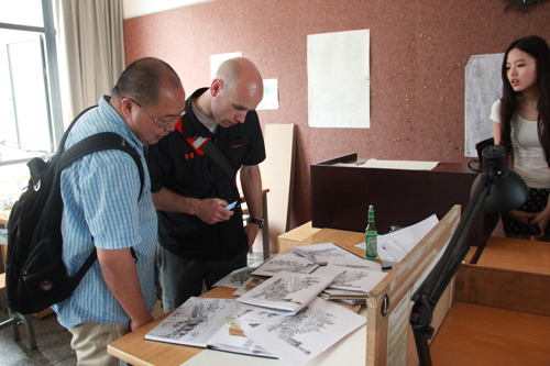 王俊老师陪同Nichoias老师参观卡通a片 学生作业