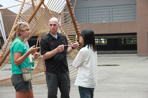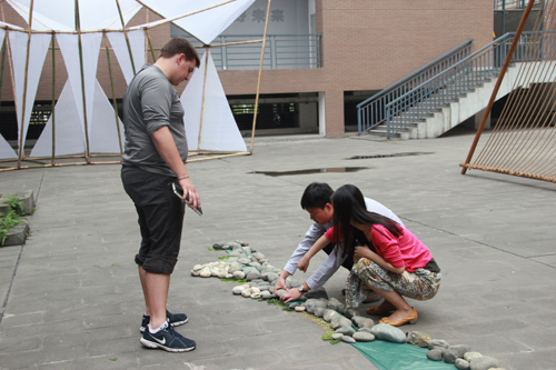 学生分为四组分别就earth、air、water中一种原素为主,在建筑馆内外做景观设计方案。