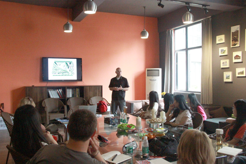 5月22日下午,美国俄克拉荷马州立大学景观系带队老师Nichoias向参与师生介绍了program,与卡通a片