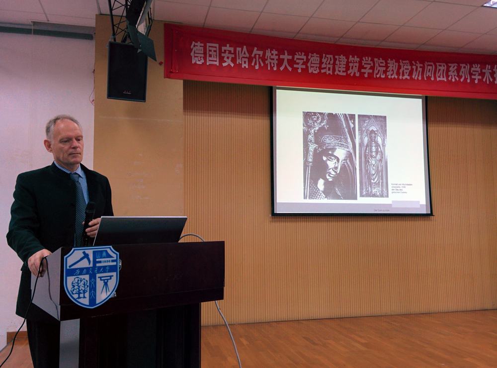 沈中伟院长和林青副院长出席了上午在犀浦校区8号教学楼学术报告厅举办的系列学术报告会,听取了Lueckmann教授所做的关于德国科隆教堂修缮记录的报告、Off教授所做的膜结构设计与技术报告、赵宇工程师所做的膜结构设计作品介绍。本次报告会还邀请了西南交大设计研究院公司总建筑师沈鸿钊等多位建筑师参加。研究生与本科生在会上与学术报告人进行了积极互动。
