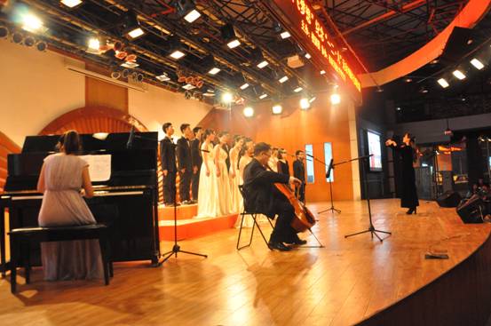 在刚刚过去的纪念“一二•九”运动79周年合唱比赛中,橙•合唱团再次取得了骄人的成绩。这次的成功绝不是偶然,是大家辛勤付出的结果。在这短短的半个月内,合唱团要从零开始排一首难度极大的歌曲,还要分四个不同的声部,而老师们也要在短时间内改好谱子并且要练习钢琴和大提琴,这对合唱团每一个人来说都是一个巨大的挑战。