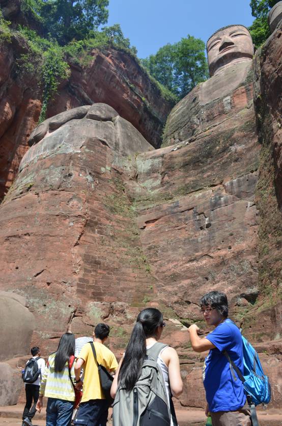 虽然酷热的天气使出行分外辛苦,但同学们得以实地体验到了石窟建筑的空间氛围,了解了乐山大佛外部也曾有窟檐的历史,并在博物馆这个结合了自然山体和人工构筑的现代作品启发下,思考了如何在建筑设计中运用传统的山岩构筑模式。这样的命题对于四川特殊的地理地貌特征而言更是颇有意义。