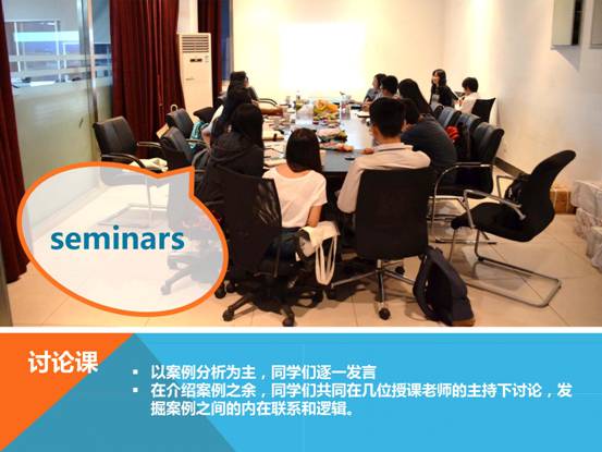 讨论课(seminar)环节以案例分析为主,同学们逐一发言,并在案例介绍之余,共同在几位老师的主持下讨论,发掘案例之间的内在联系和逻辑。除了开始阶段老师们所做的启发性讲解,整个课堂的教学内容基本是依靠同学们敏锐的观察和推理支撑起来的。