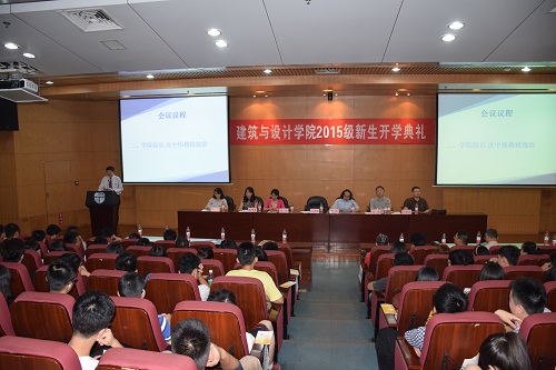 沈中伟院长首先代表全院师生员工,向2015级新生表示热烈的祝贺和欢迎,同时也向精心培养学生的老师和家长致以诚挚的感谢。简要介绍了建筑与设计学院的历史、发展及近年来取得的成就。随后沈院长就同学们如何充实而有意义地度过大学生活,提出了几点建议与2015级新生分享。