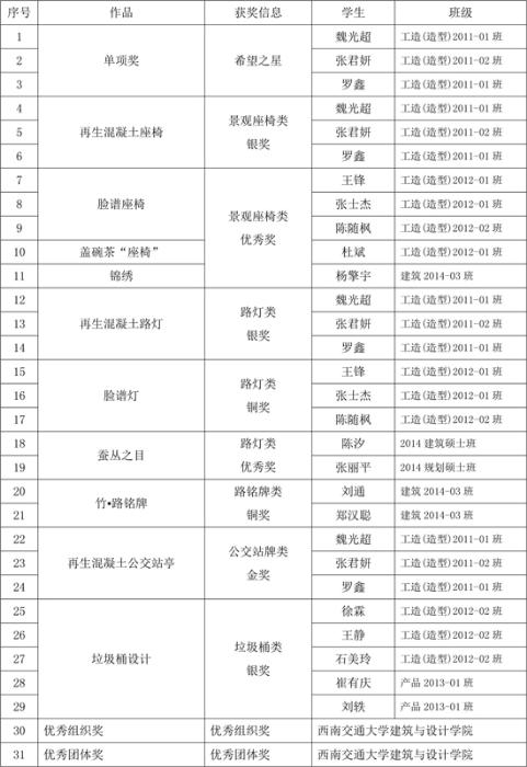 师生还获得“汽车设计类”金奖-《多地形自平衡担架车》与银奖《F-WING汽车设计》、“轨道交通设计类”银奖《成都地铁设计》、传统手工创新设计奖《竹材料汽车概念设计》以及8个优秀奖,可见硕果累累,体现了卡通a片