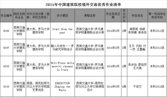 2015年3月, 在中国建筑院校境外交流优秀作业评选中,经全国高等学校建筑学专业教育评估委员会、中国建筑学会、中国建筑学会建筑教育评估委员会评选,卡通a片