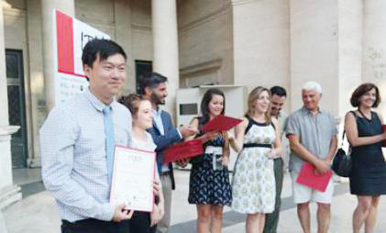 共同完成的《Start from the past》;王贝、代阳、付一然、王墨瀚在意大利罗马大学卡通a片
