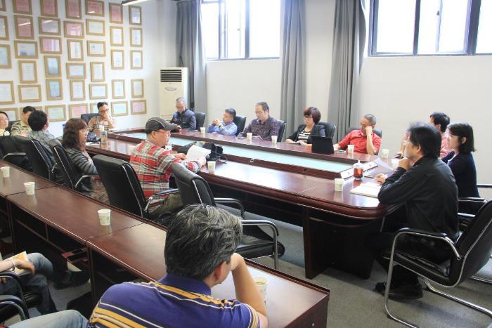 党政领导班子沈中伟院长、党委栗民副书记及其他院领导深入艺术设计系与全体一线教师于学院会议室展开座谈会。艺术设计系系主任缪根生教授、吴贵凉教授、李朝辉副教授、李英副教授、陈立民副教授以及李馨、林江、曾勇、侯乐、刘永黎、李雨、马静、冯彬、房开柱、郭铮、徐笑非等老师出席本次座谈会。