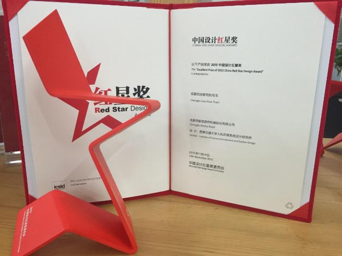11月19日下午,在北京举办的“2015中国设计红星奖颁奖典礼”上,建筑与设计学院人机环境系统设计研究所团队作品《成都低地板有轨电车》、《200km/h客运机车外形及驾驶室设计》、《“鱼骨”桥梁设计》再获“2015中国设计红星奖”。这是该团队继2012,2013年两次获得红星奖以来,第三次获此殊荣。