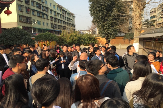 3月3日,四校师生齐聚彭州龙兴寺,在圆彻大师的带领下,参观龙兴寺风貌,了解彭州龙兴寺的发展史,并开始了初期的场地调研。在彭州市规划局同志的带领下,四校学生混合组队,分为四大组对场地进行了详尽的调研并一同制作调研报告。