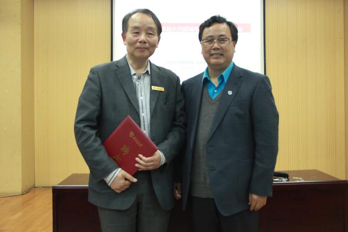 建筑与设计学院报告厅举行。学校党委书记王顺洪教授出席了报告会及聘任仪式,为王建国院士颁发聘书并为王院士佩戴校徽。仪式由建筑与设计学院院长沈中伟教授主持。