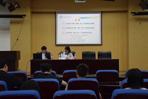 刘一杰副书记从开展“两学一做”学习教育总要求、主要措施、重点解决的问题、组织领导等五个方面解读了《中共建筑与设计学院委员会关于在全体党员中开展“学党章党规、学系列讲话,做合格党员”学习教育的实施方案》,并就近期开展“两学一做”学习教育做了具体安排。