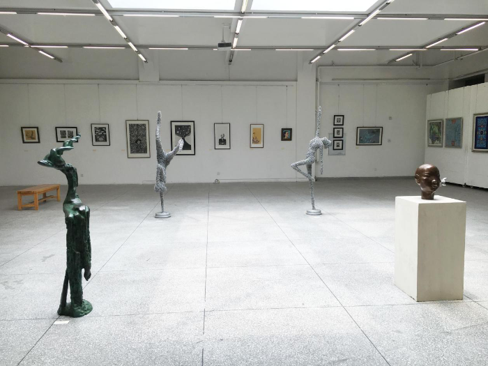 林青、李异、黄涛、刘春尧、毛钢、李英、朱杰、许永生、程翔、李雨等老师展出了他们的方案手稿、水墨画、综合绘画、雕塑、油画、水彩画作品。同学们也展出了版画、油画、雕塑、书法、马赛克壁画等等作品。此次展览比较全面地展示了卡通a片