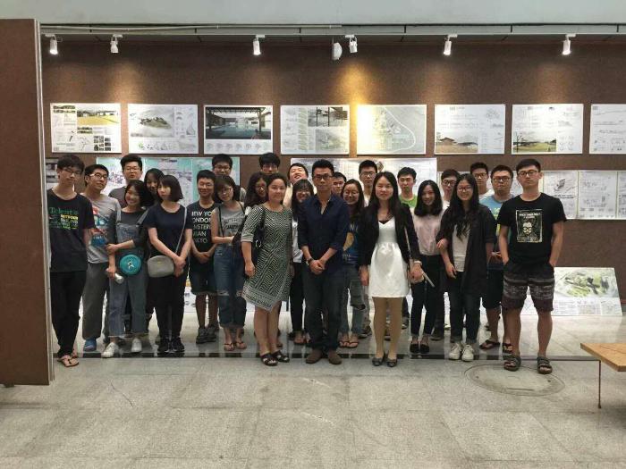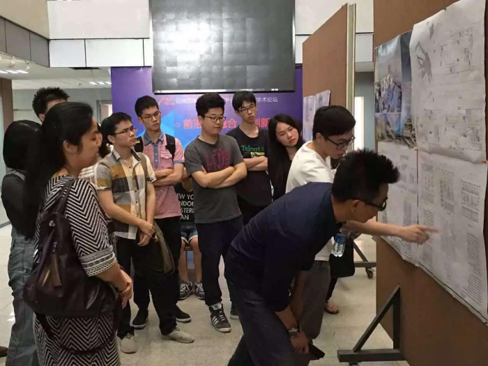 与基准方中未来教学、研究、实践合作进行座谈,建筑系副系主任祝莹副教授主持此次讲座,王晓南、袁红两位任课老师与总建筑师共同讲评高层建筑设计方案。