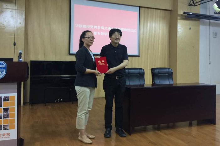 兼职教授仪式暨专题学术报告会”在建筑与设计馆学术报告厅举行。沈中伟院长主持报告会,并为华颖教授颁发了卡通a片