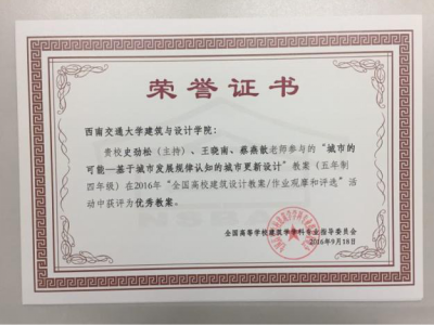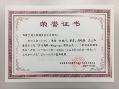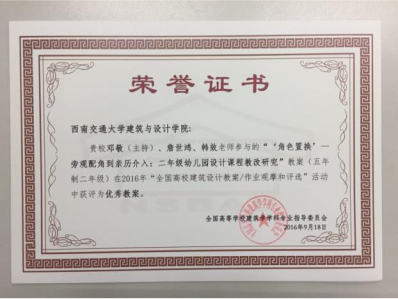 取得了非常优异的成绩。建筑系选送参评的3份教案及7份学生作业(建筑学二、三、四年级)全部获奖,获奖率100%,与全国其它5所高校并列第一。