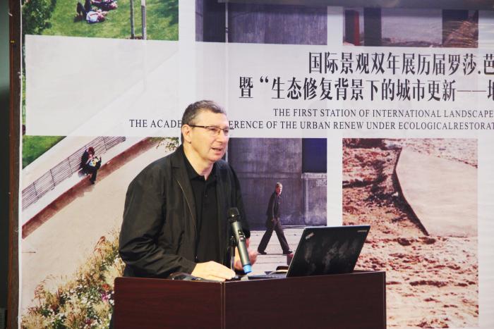 开幕式后,国际景观双年展主席,西班牙加台罗尼亚理工大学的鲁伊桑切斯教授做了题为“打破定式&重塑景观”的学术报告,分享了巴塞罗拉景观设计研究和实践的演进历程。