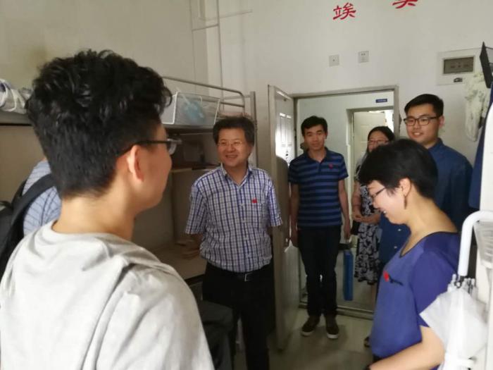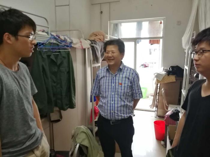 6月29日下午14:30,卡通a片 党委书记、院长沈中伟带领院班子,院团委老师,毕业班辅导员等一行走访了本科毕业班宿舍。领导和老师们的到来让毕业班同学高兴而激动,他们踊跃地与老师们交流,表达兴奋、不舍与感激之情。