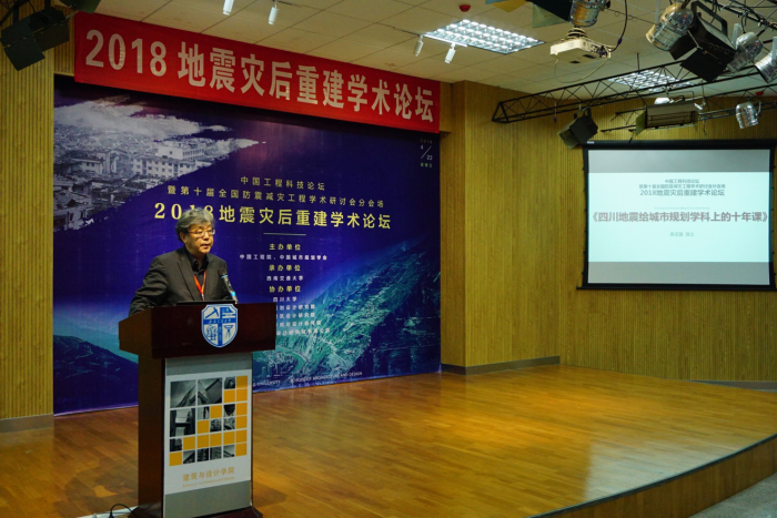 承办,四川大学、成都市规划设计研究院、四川省建筑设计研究院、四川省城乡规划设计研究院、中国建筑西南设计研究院有限公司协办。论坛旨在总结我国在灾后重建实践中的经验,探讨灾后重建规划建设的新理论与新方法,商讨促进城乡可持续发展的策略。共计20余位领导及专家学者,100余位同行师生参与本次盛会。在紧张而充实的一天里,各位嘉宾为我们献上了一场学术的饕餮盛宴!