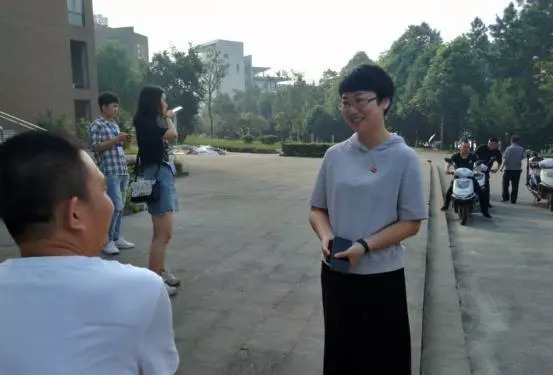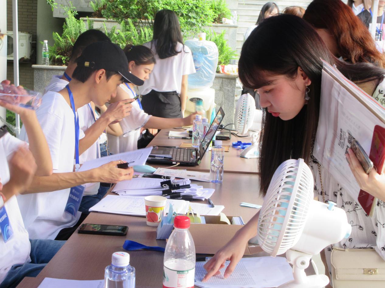 学生的优良风貌,不惧天气炎热,依然坚守在自己的岗位上为新生及家长服务。