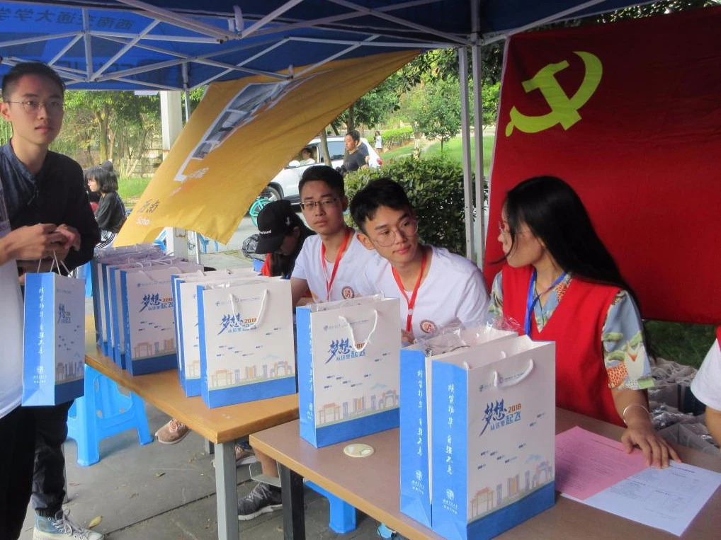 各组织部门通力协作、分工明确,长阶前到处都是忙碌的身影。参与迎新的工作人员为前来报到的新生赠送精心准备的大礼包,对他们细心叮嘱、耐心引导,为新生提供力所能及的帮助。