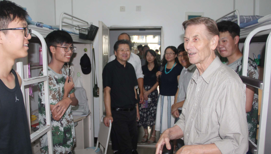 走访中,沈中伟书记详细询问了新生们入住宿舍的情况以及遇到的相关问题,提醒同学们注意防暑,注意养成良好的生活作息和卫生习惯,注意人身安全。Odgard院长也亲切地询问大家来自哪里,是否思念家乡,并且希望新生们可以适应享受校园生活,能够拥有一段愉快的大学时光。同时,老师们在走访过程中,纷纷与同学们分享了自己的校园生活经历和相关小秘诀。