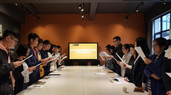 最后,全体班组老师与学生干部起立宣誓,恪守学生本分、牢记组织宗旨、永葆理想主义情怀、扎扎实实做事、营造平等氛围、摒弃庸俗习气。相信通过本次自律公约的学习能够激励各位学生干部更好地规范自己,能够回归初心,更好地把学生组织服务同学的作用发挥出来。