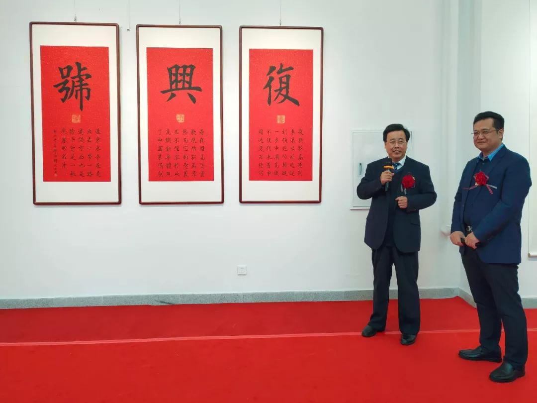 仪式后,学院党委沈中伟书记表示:本次展览也是为了进一步贯彻落实党的十九大精神、全国高校思想政治工作会议精神和全国教育大会精神要求,围绕“立德树人”根本任务,以文化人、以美育人这一目标而开展,希望能够更多的师生及书法爱好者前来品鉴、学习。