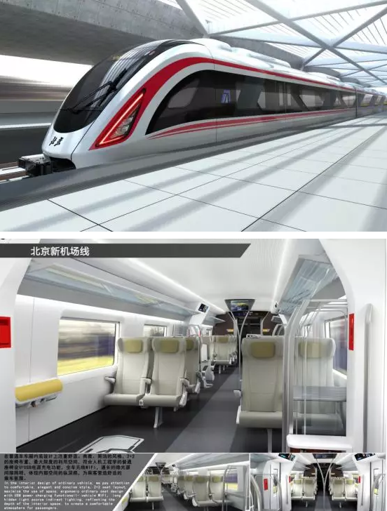 基于现代美学与北京新机场线的线路要求,采用技术成熟的材料和工艺方法。本着轻量节能,环保,提高寿命,便于维修维护的原则,提高了车辆运行的安全性和舒适性。